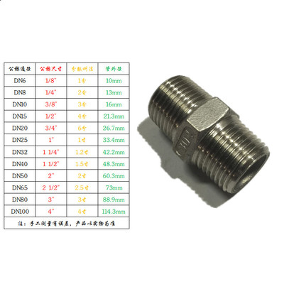 Stainless steel pipe fittings up to standard 304 pairs of wires. Bluetooth. Outer wire. Hexagon. Inscribed. Low-profile external teeth straight connection pipe fittings. 4 points 6 points 1 inch 1.2 inch 1.5 inch 2 inch 2.5 inch 3 inch 4 inch inline