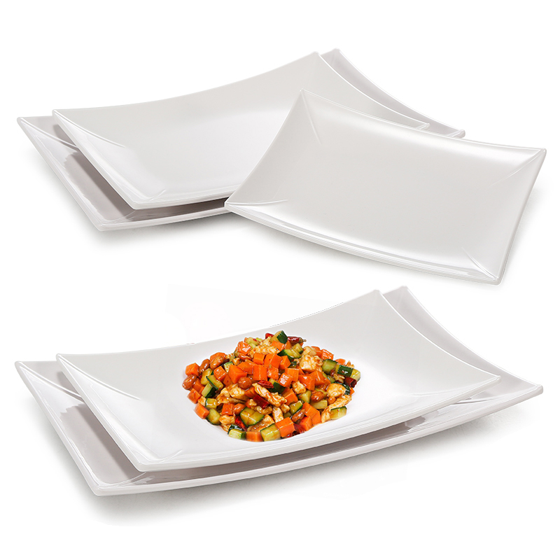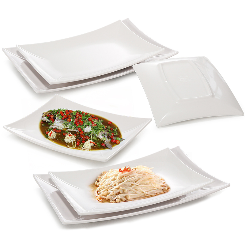 A5 mix-amine white rectangular plate creative warping Angle plate mix-amine imitation porcelain stir-fry plate Japanese sushi plate placed dish dish stir-fry