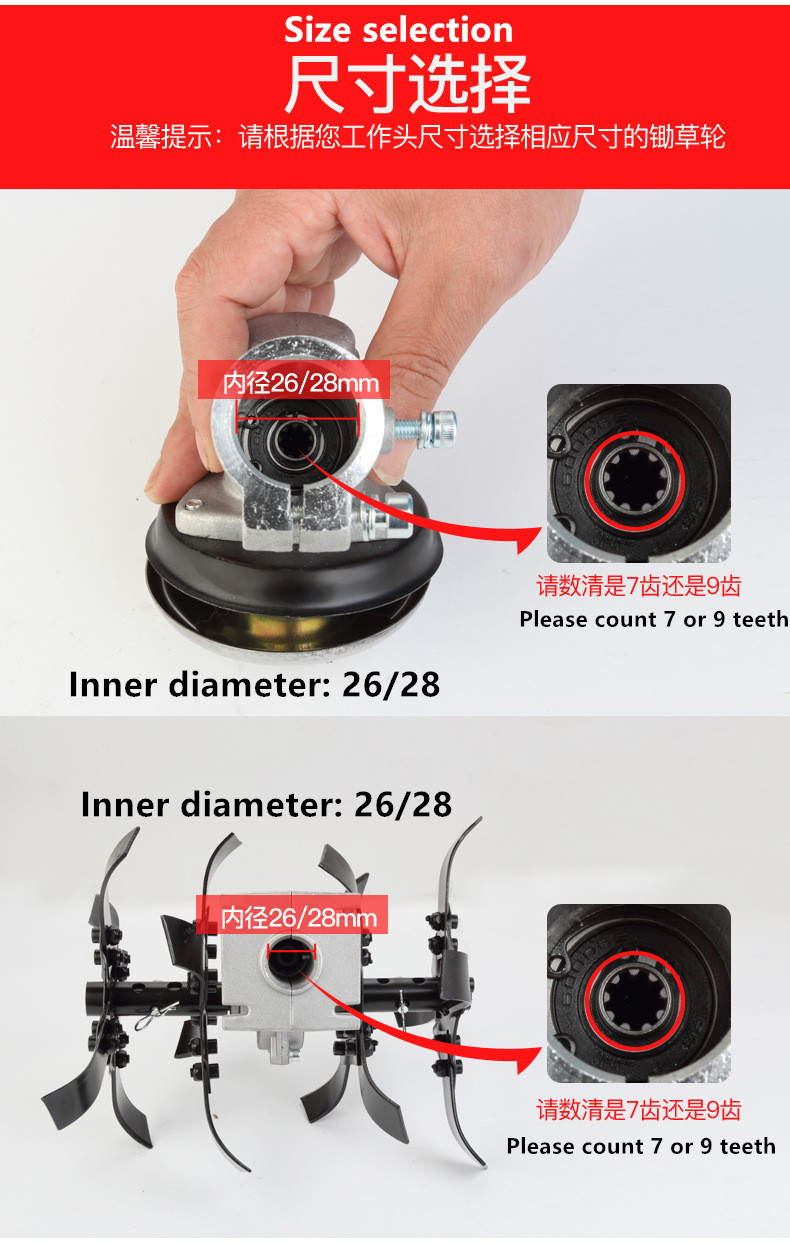 Deep cultivating wheel 28mm inner diameter tube 7 teeth total length 29