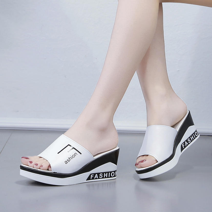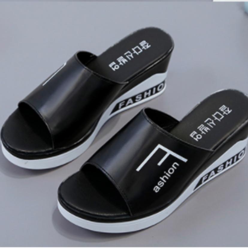 Summer Korean version of the new wedge with slippers thick bottom word drag fashion wild sandals (shoes 107)
