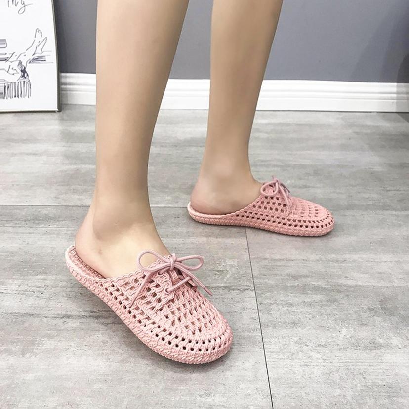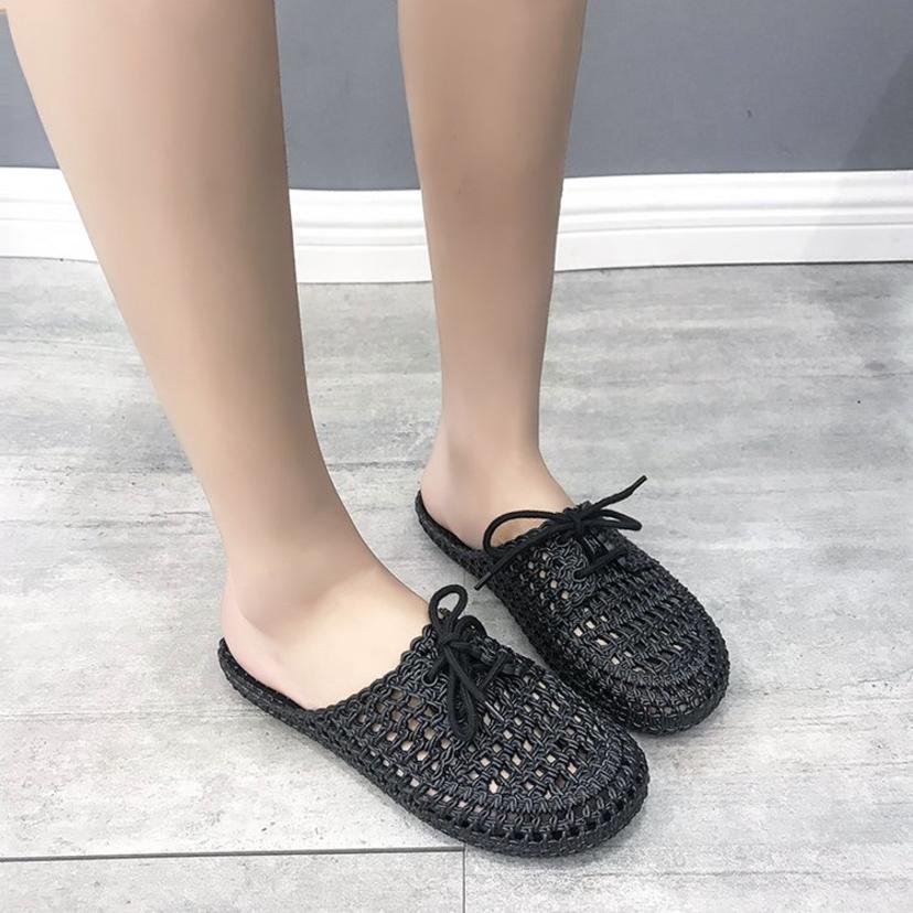 2019 summer sandals and slippers women wear fashion comfortable casual baotou semi-flat flat with flat solid half slippers women (shoes 108)