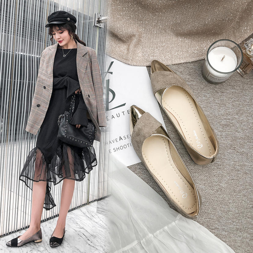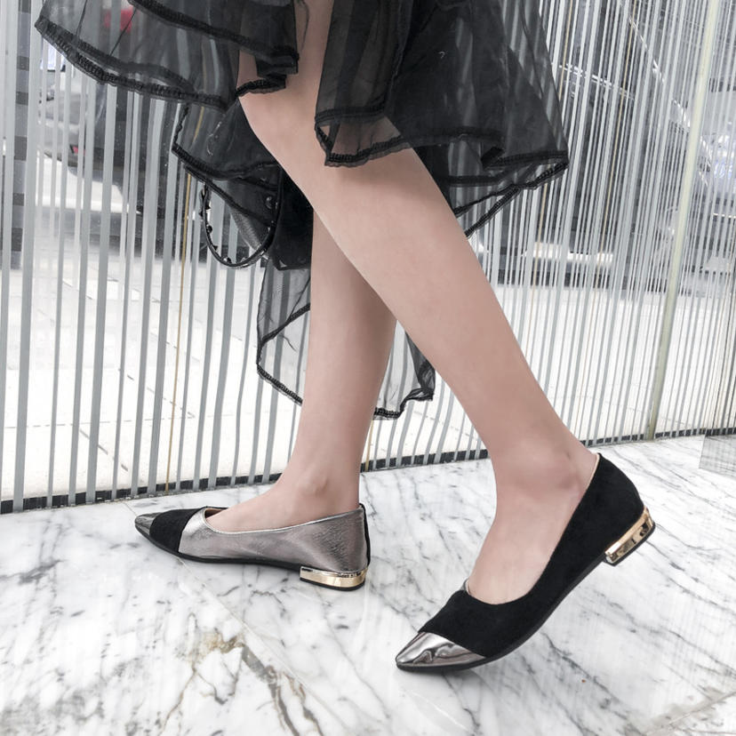 [New shoes] 2019 spring and autumn new single shoes women's shoes low shoes Korean fashion shallow mouth pointed thick with flat shoes WLDF-3 (shoes 114)