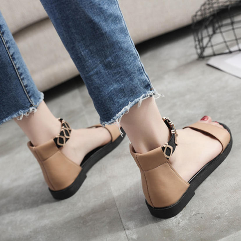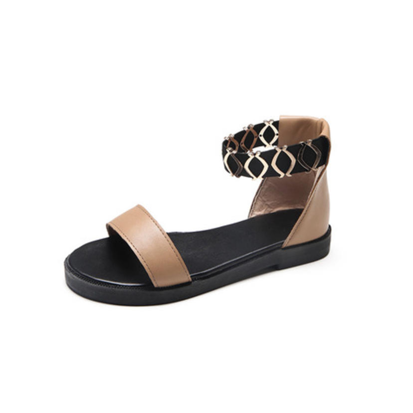 New colorblock flat-bottomed flat-toe casual open toe women's sandals (shoes 118)