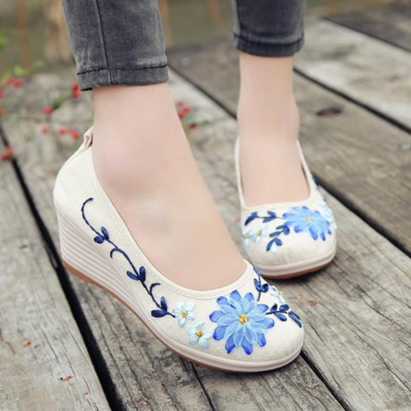New old Beijing cloth shoes with national wind embroidered shoes retro high-heeled shoes embroidered shoes women's shoes (shoes 126)