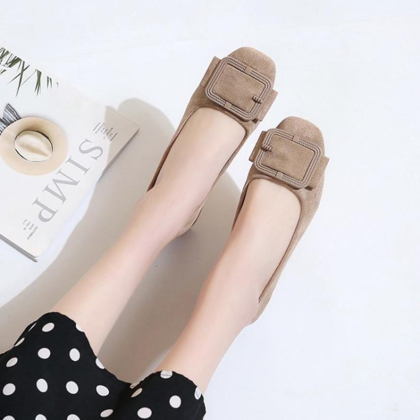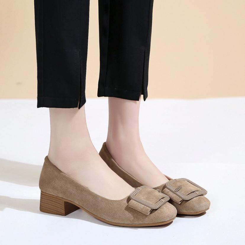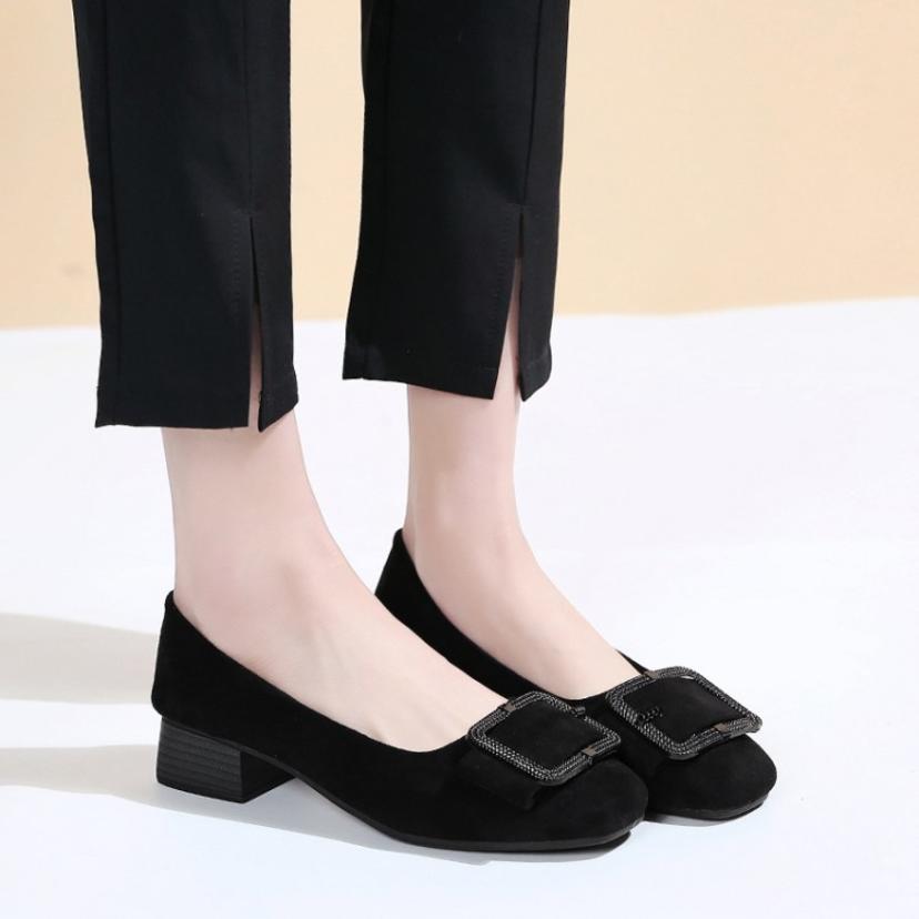 2019 new Korean fashion belt buckle suede shallow mouth square head single shoes low heel thick with female shoes work shoes WLDF-3 h241 (shoes 129)