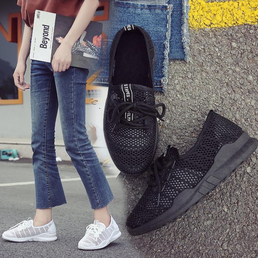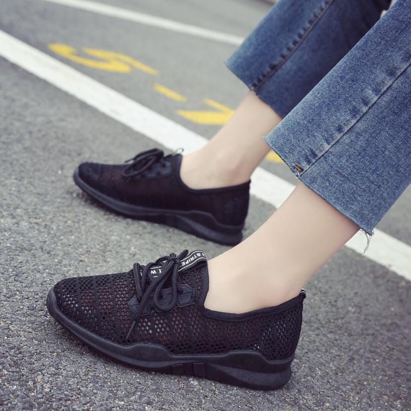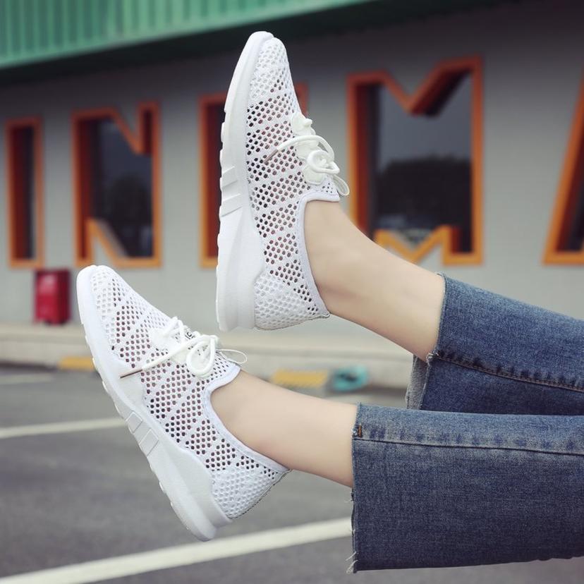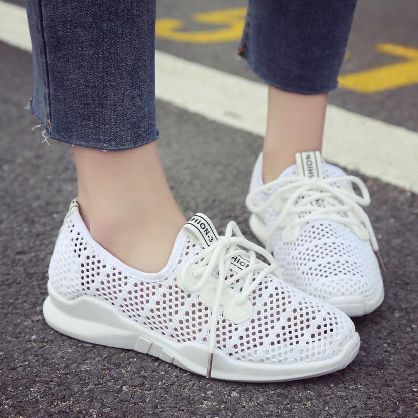 Small white shoes women's breathable mesh shoes summer 2019 new wild flat shoes casual shoes hollow mesh platform sports shoes (shoes 134)