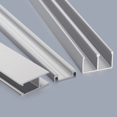 Glass sliding door track. Track. Aluminum strips. Glass rails. Three sets of bookcase slide chutes. Glass rails