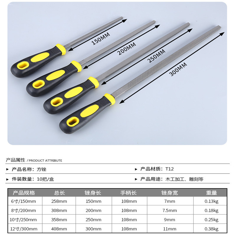 6 inch square file 150mm (10 pieces / box, 100 pieces / piece, 0.125kg / piece)