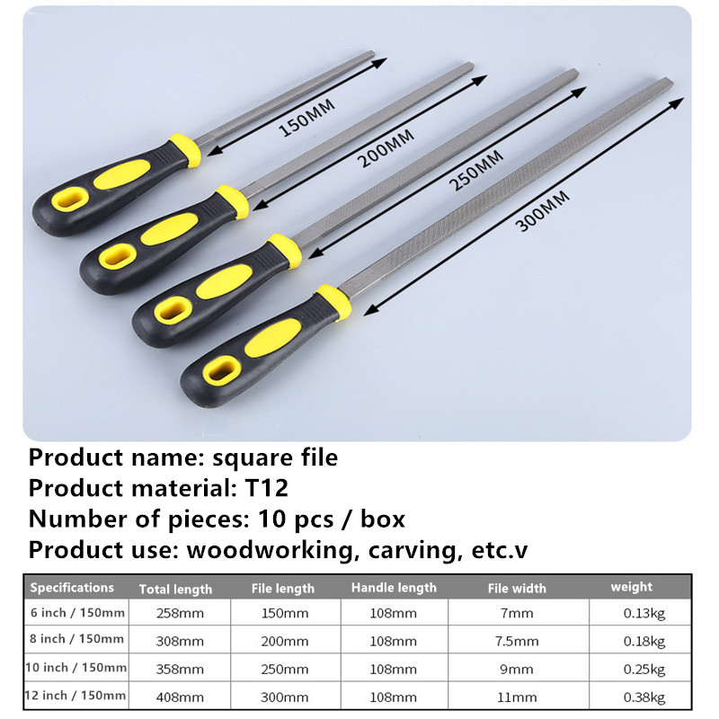 Square file File with two handles Flat file 300mm Semi-circular file Round file Triangular file File
