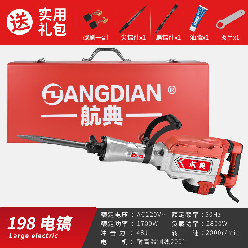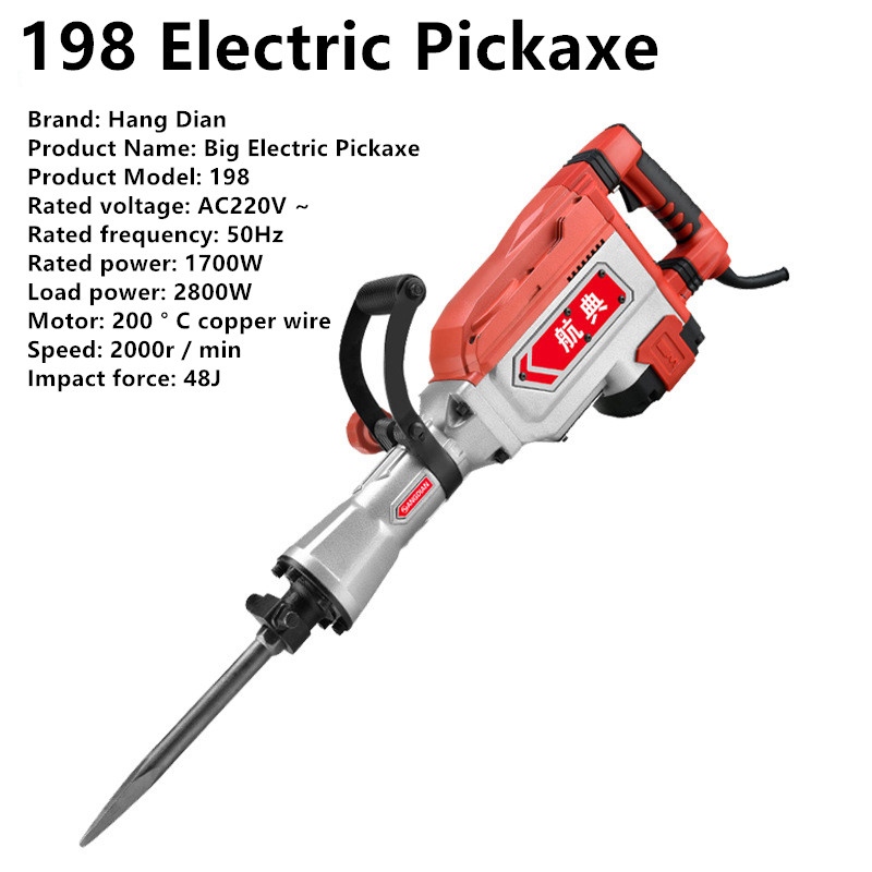 Hang Dian Electric Pick 198 High Power Concrete Industrial Heavy Electric Pick Professional Breaker Single Electric Pick Electric Hammer Electric Chisel With Power Cord 13A British Plug