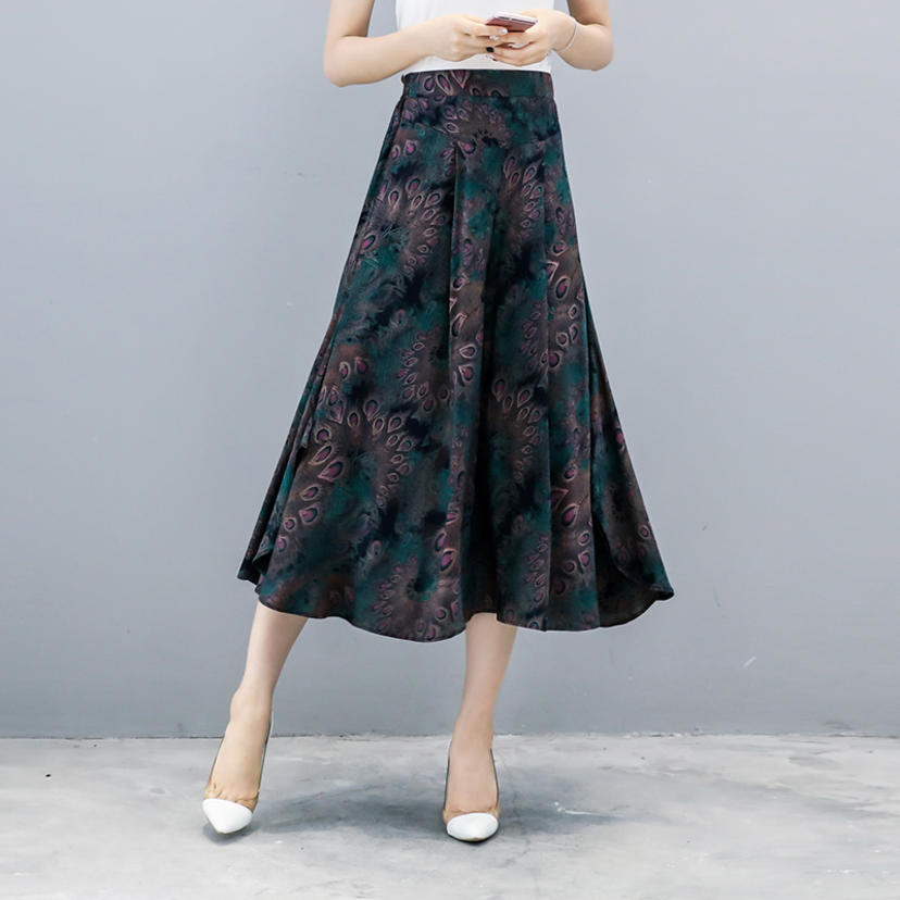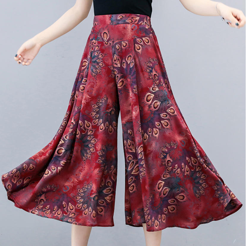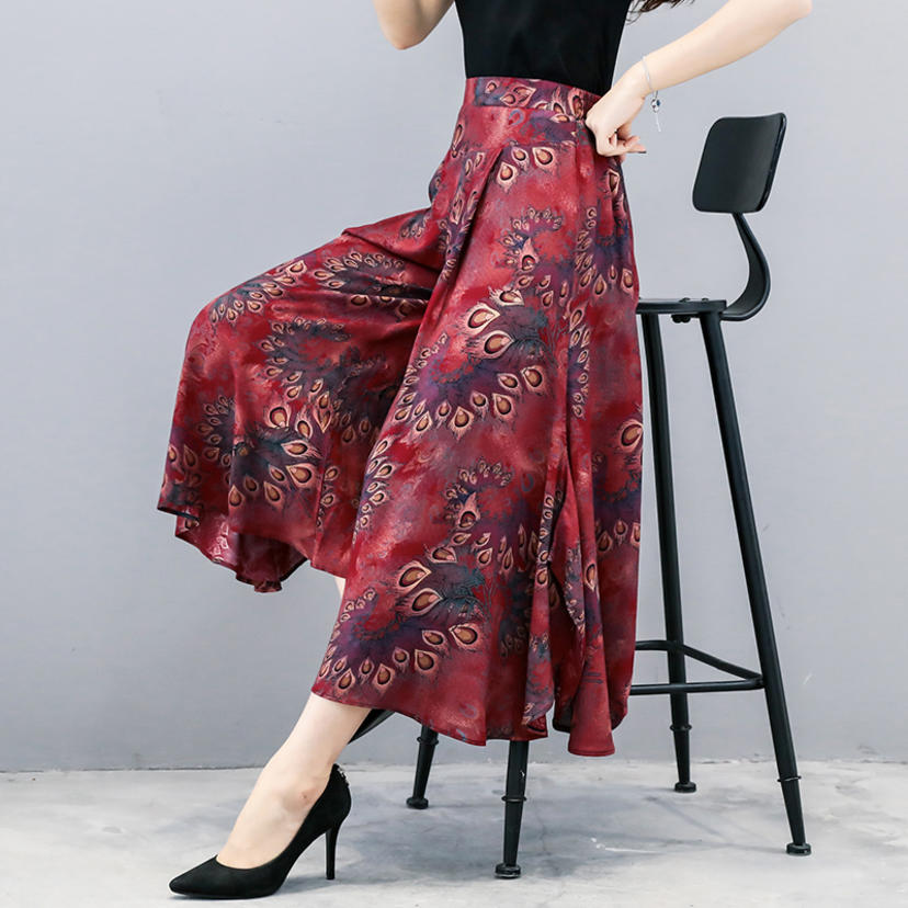 2019 summer new high waist loose thin nine points printed wide leg pants large size leg pants tide i113 (pants 5)