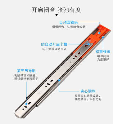 Special custom three section steel ball slide rail. Track. Silent drawer slide hydraulic stainless steel damping cabinet rail wholesale