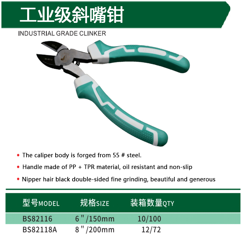 Bosi 6-inch 8-inch industrial-grade oblique nose pliers oblique pliers classic handle wire pliers sharp-nose pliers