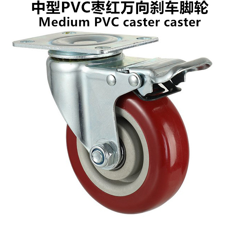Medium-sized PVC bayonet casters, directional wheels, fixed wheels, universal wheels, universal brakes, casters, polyurethane, directional wheels, bayonet casters, load bearing 75KG-150KG