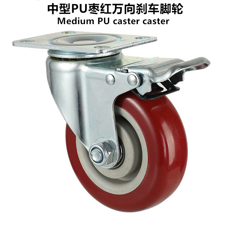 Medium-sized PU bayonet casters, directional wheels, fixed wheels, universal wheels, universal brakes, casters, polyurethane directional wheels, bayonet casters, load bearing 75KG-150KG