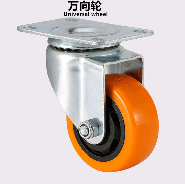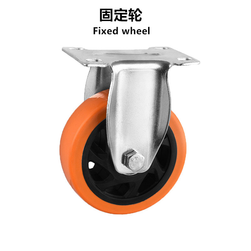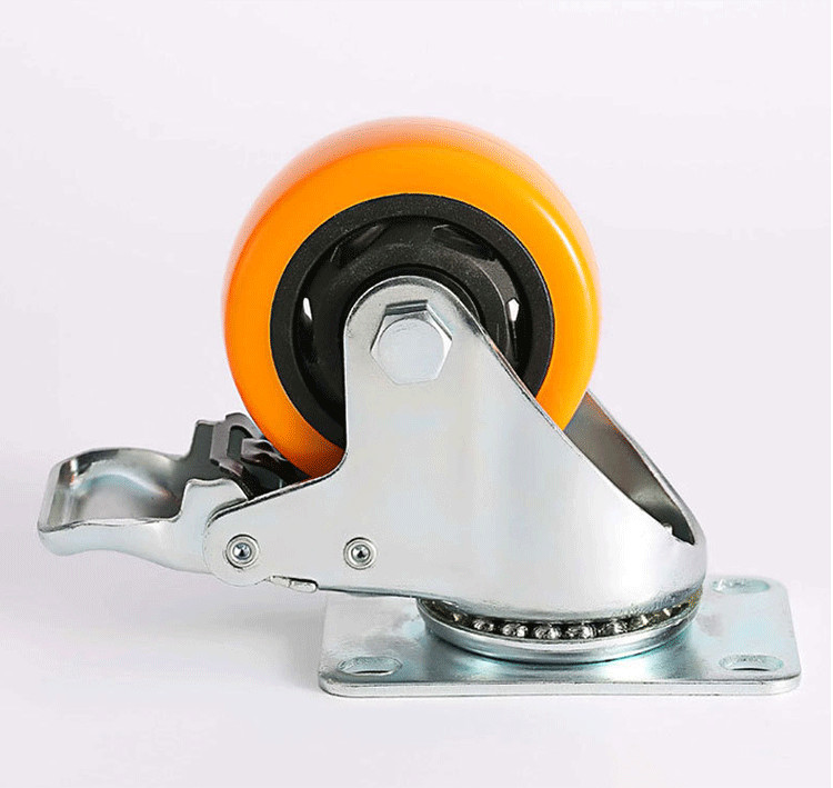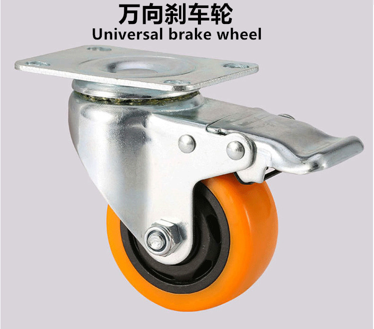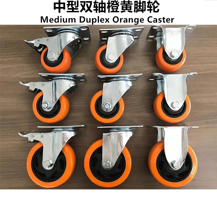 Medium-sized orange-yellow casters, directional wheels, fixed wheels, universal wheels, universal brakes, casters, polyurethane directional wheels, bayonet casters, load bearing 75KG-150KG