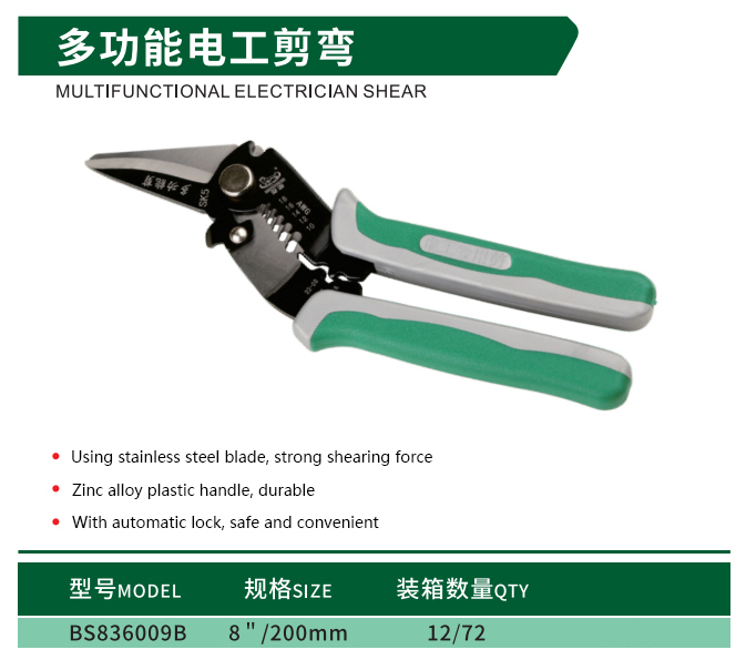 Boss Multifunctional Electrician Shear Bending Italian Tin Shears Scissors Chrome-Vanadium Steel Scissors