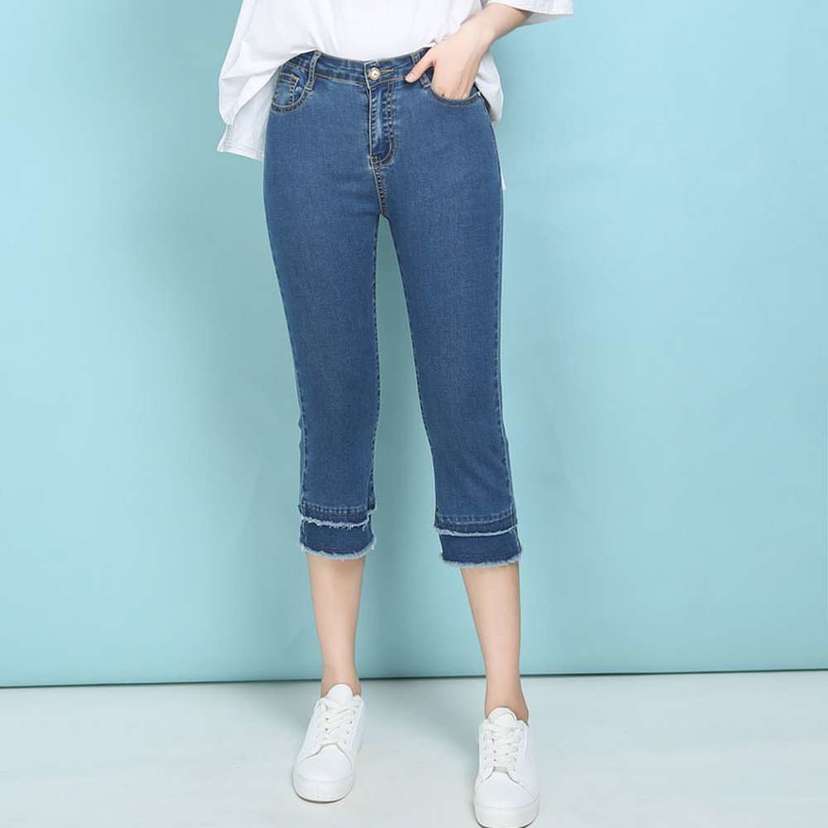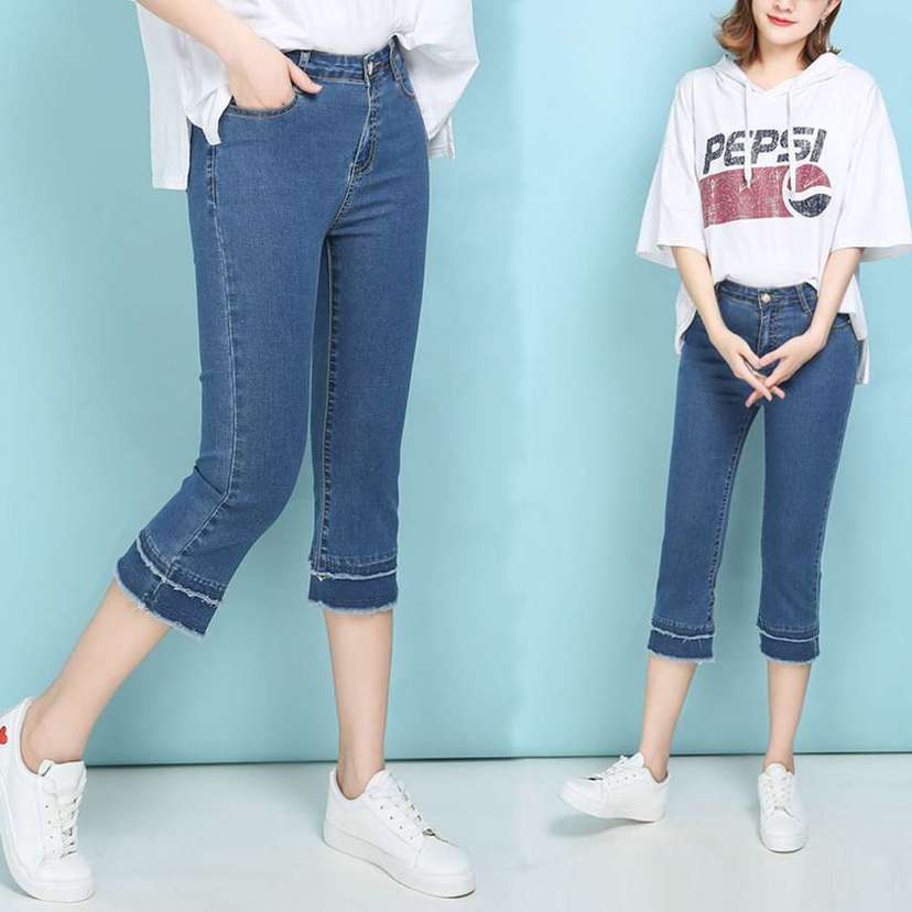 Summer new large size women's fat mm micro-rale seven jeans edge stitching was thin 7 points tide pants [DM] (trousers 27)