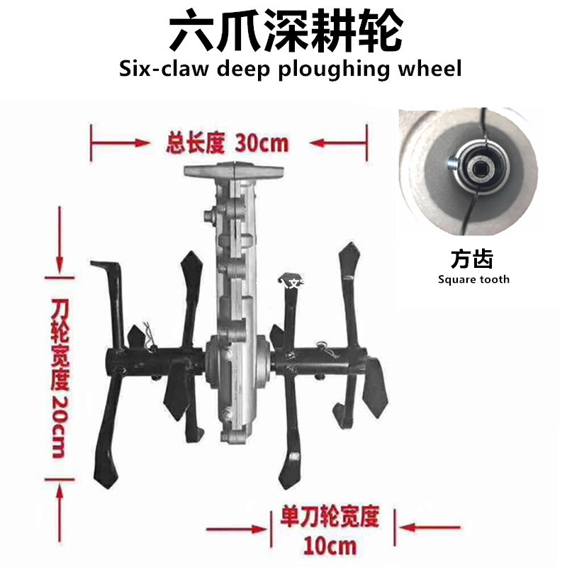 Lawn Mower Square Tooth Ripper Rotary Plow Ripper Shovel Ripper Blade Six Claw Deep Cultivation Wheel Leveling Cutter Wheel Inclined Cutter Wheel