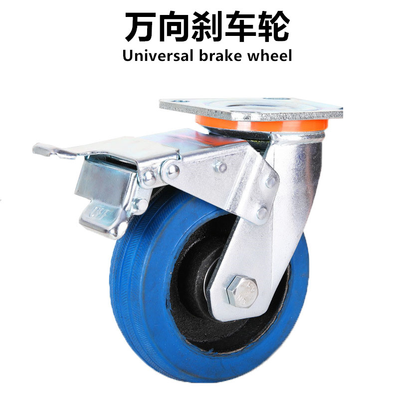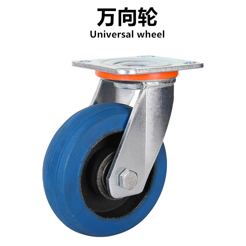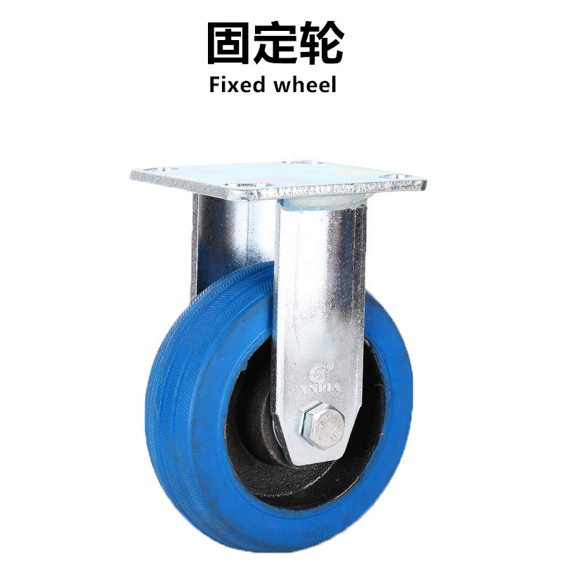 Heavy-duty iron core blue elastic mute rubber wheel 4 inch 5 inch 6 inch 8 inch fixed wheel directional wheel swivel caster swivel brake