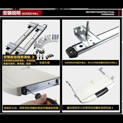 Computer desk keyboard rack, keyboard bracket, two-section bracket, mouse keyboard tray, office rail rack, mute slide rail, rail bracket, drawer rail