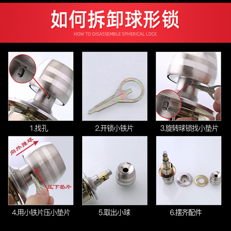 587PC Ball lock steel light stainless steel ball lock indoor door lock bathroom lock room door exterior door lock ball lock