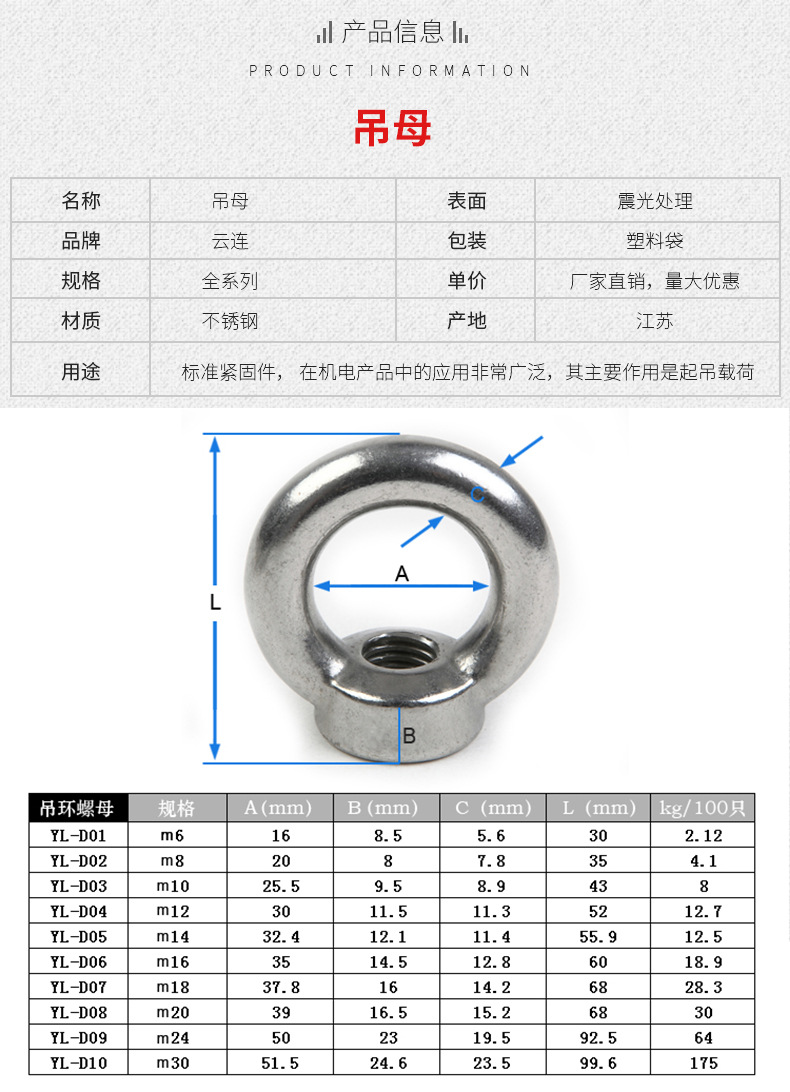 Yunlian ring nut. Nut. Wire rope accessories. 304 stainless steel ring nut. Ring nut M24 ring nut hanger direct sale. M6 M8 M10 M12 M14 M16 M18 M20 M24 M30