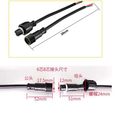 Outdoor LED 5 core 0.3 flat / 0.5 flat waterproof cable waterproof male and female connector plug 678 core