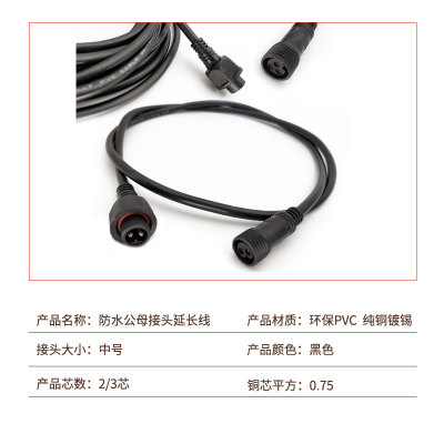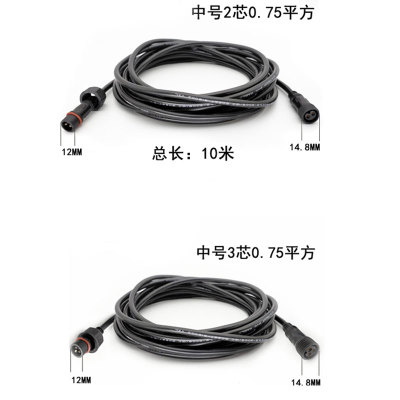 Solar light extension cable lengthened two waterproof male and female connectors double core 2 core 0.75 square 5/10 meters