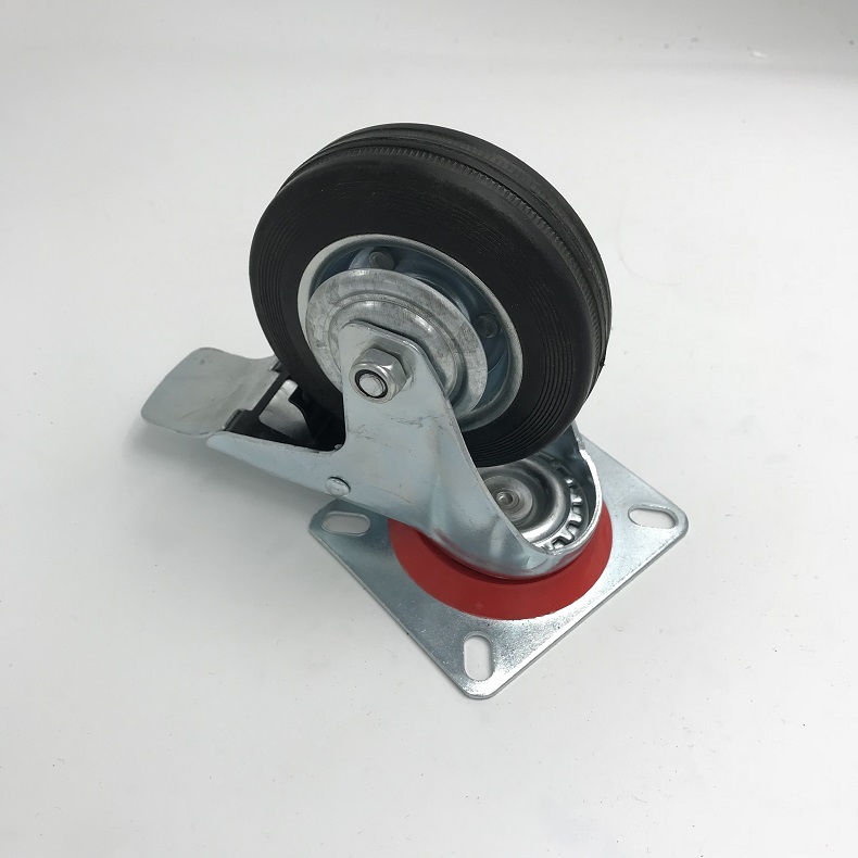 Rubber industrial caster caster caster caster single brake directional wheel industrial caster movable wheel screw low gravity furniture caster wheel