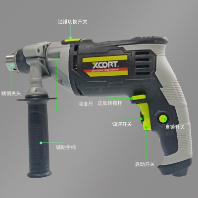 Xilin XCORT 13mm impact drill two-stage deceleration high-power multi-function speed regulation electric drill electric hammer pick