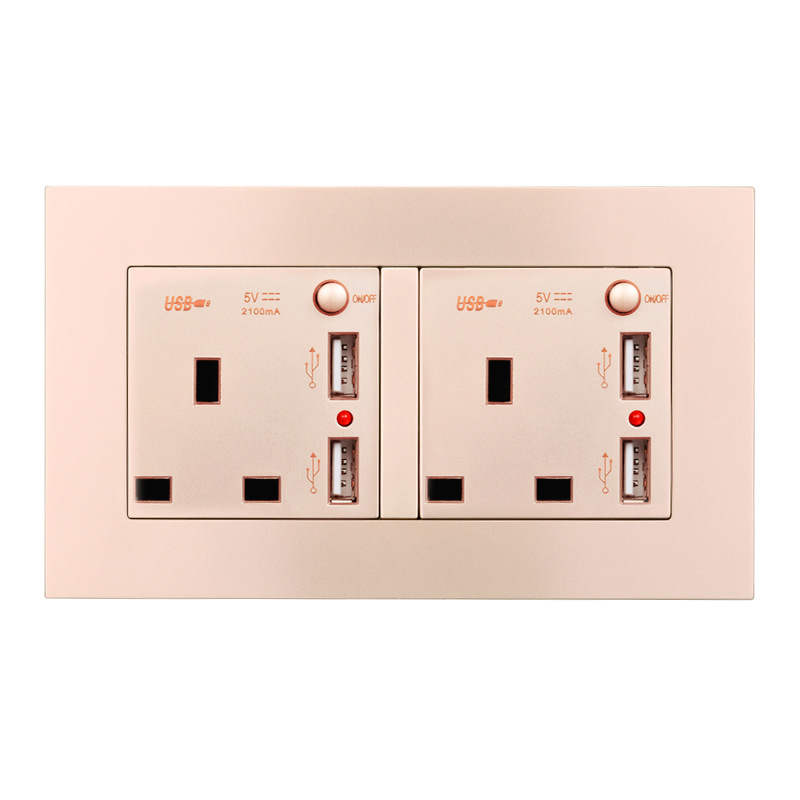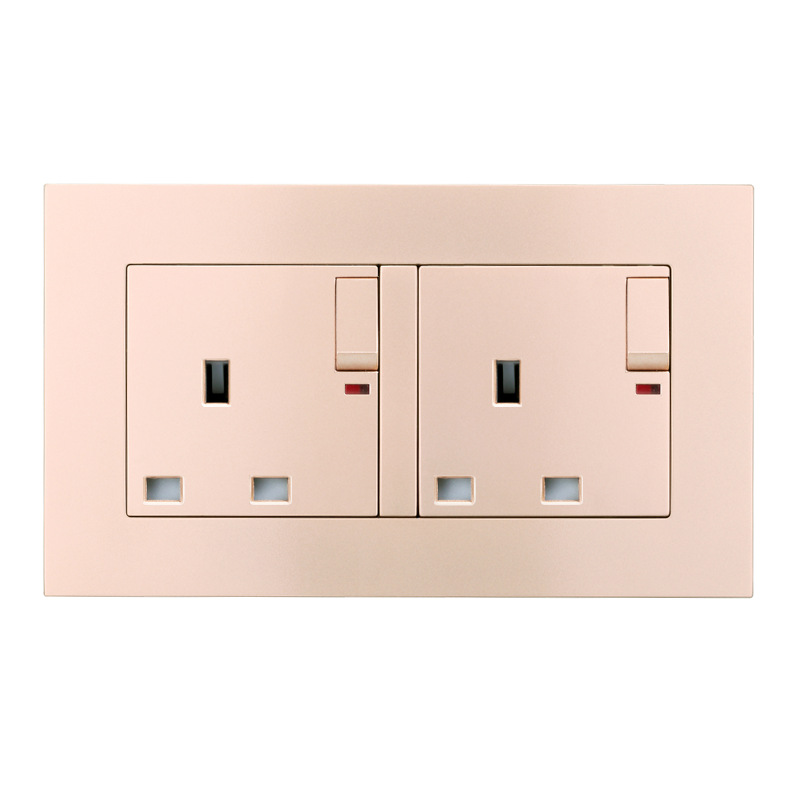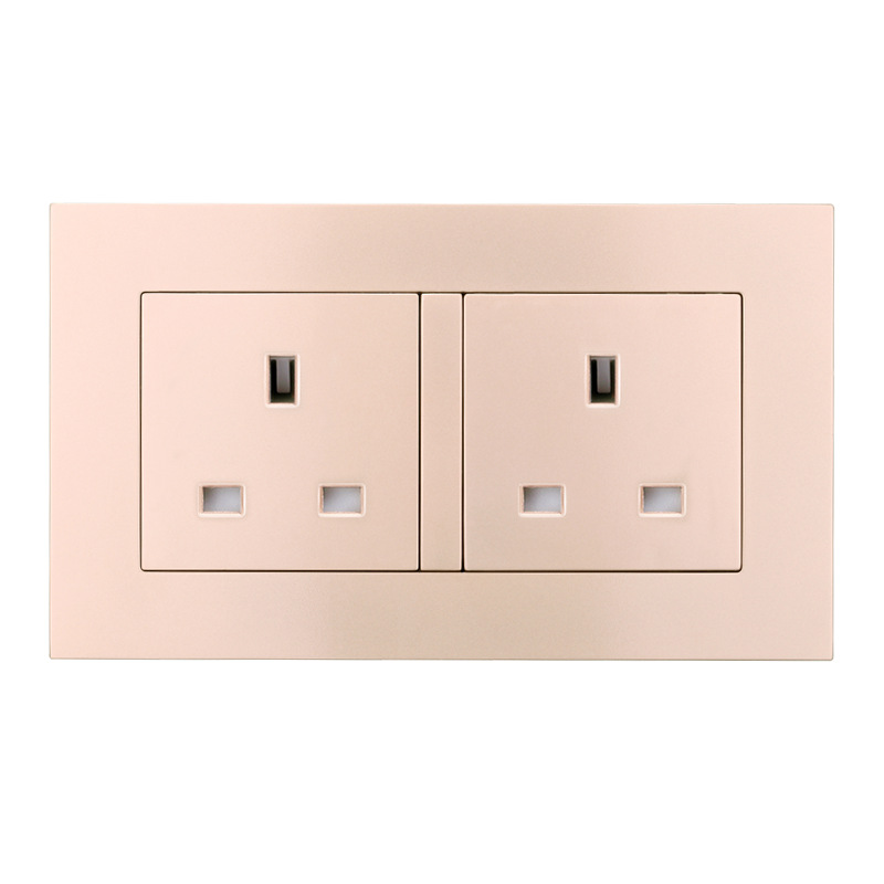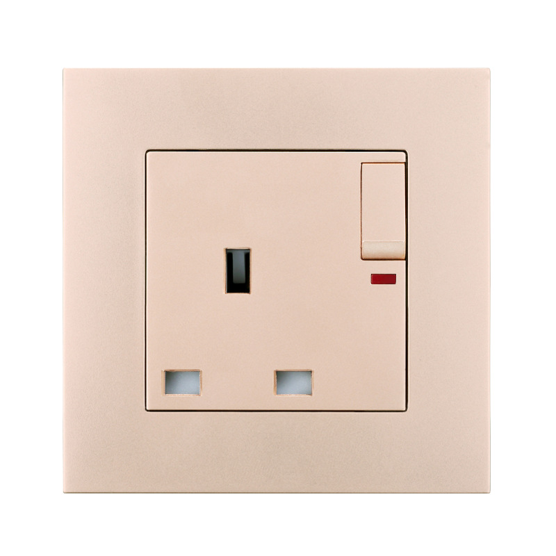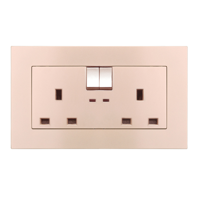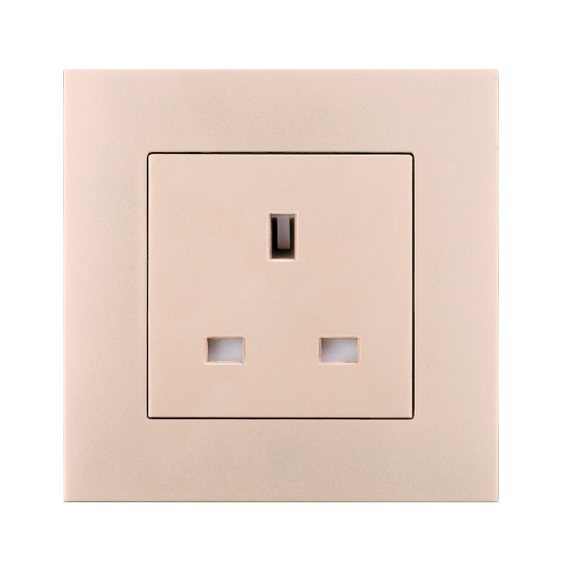 Champagne gold British switch square plug socket 86 type British square foot square hole switch socket panel 13A British standard socket British standard socket British socket 13A square foot plug