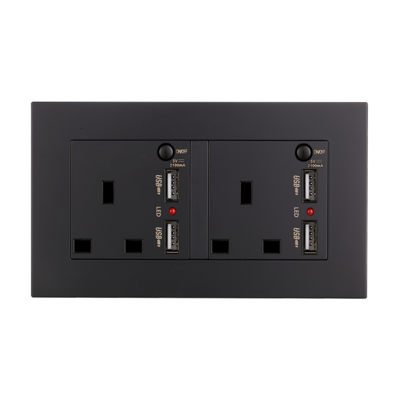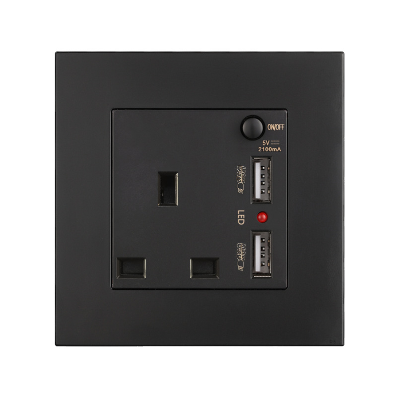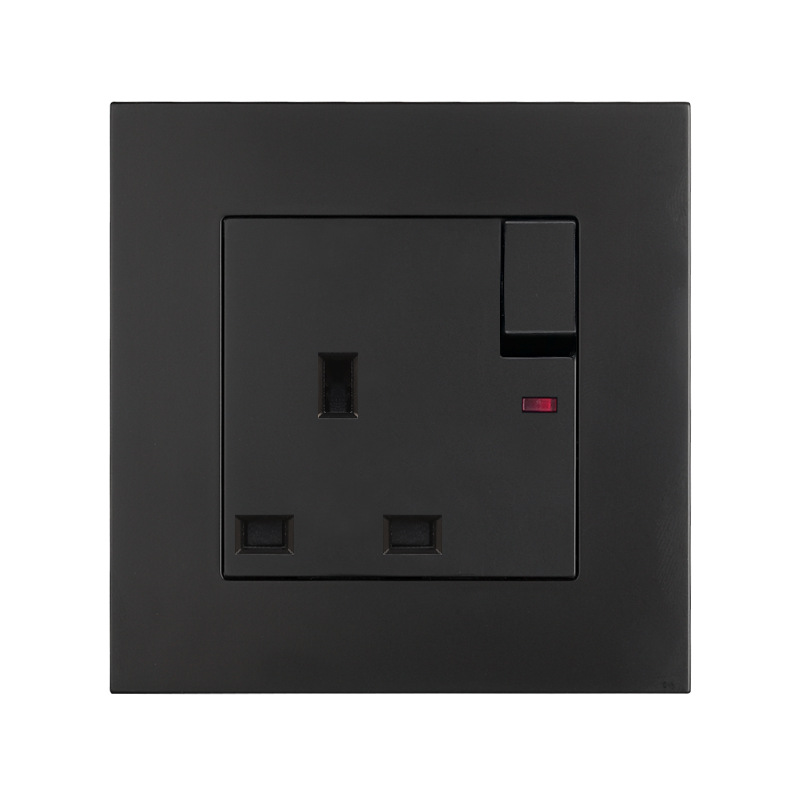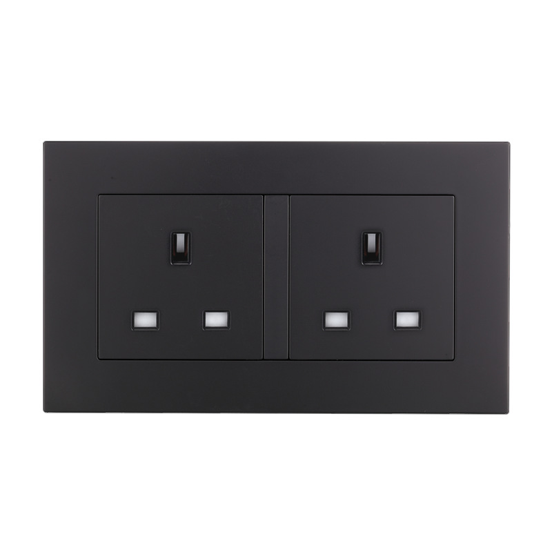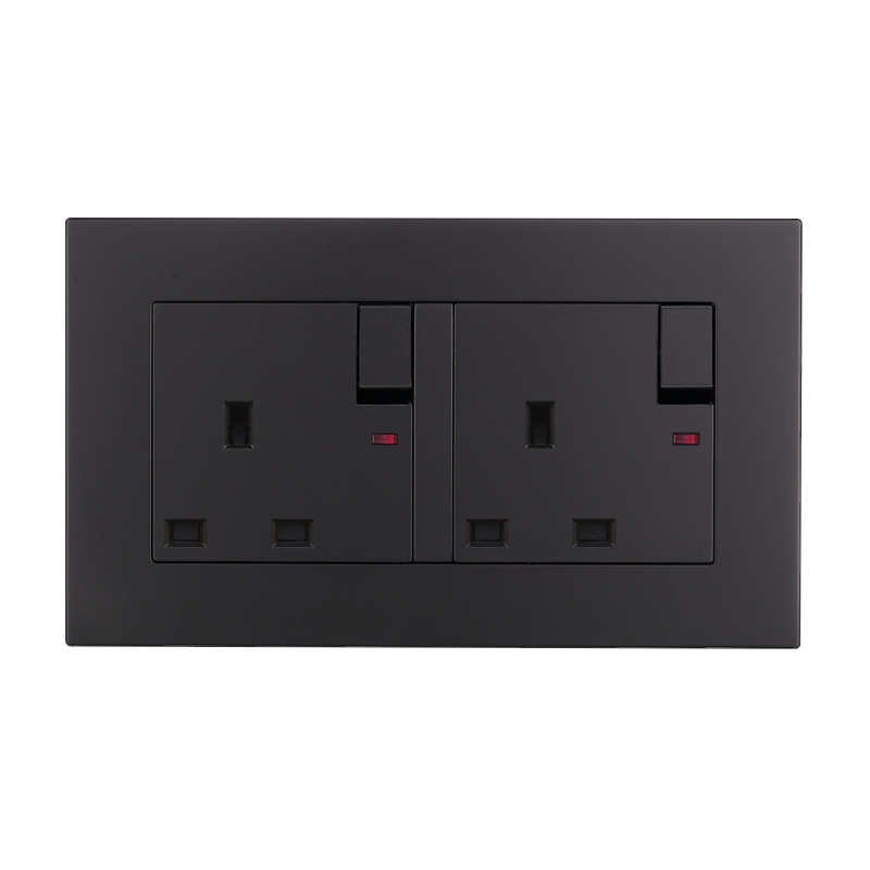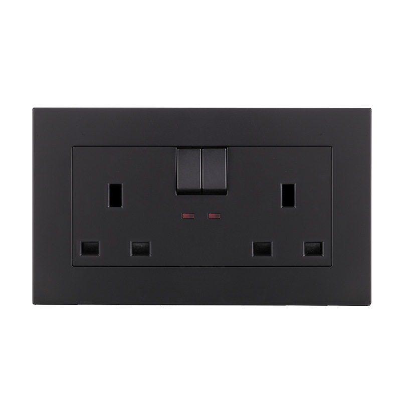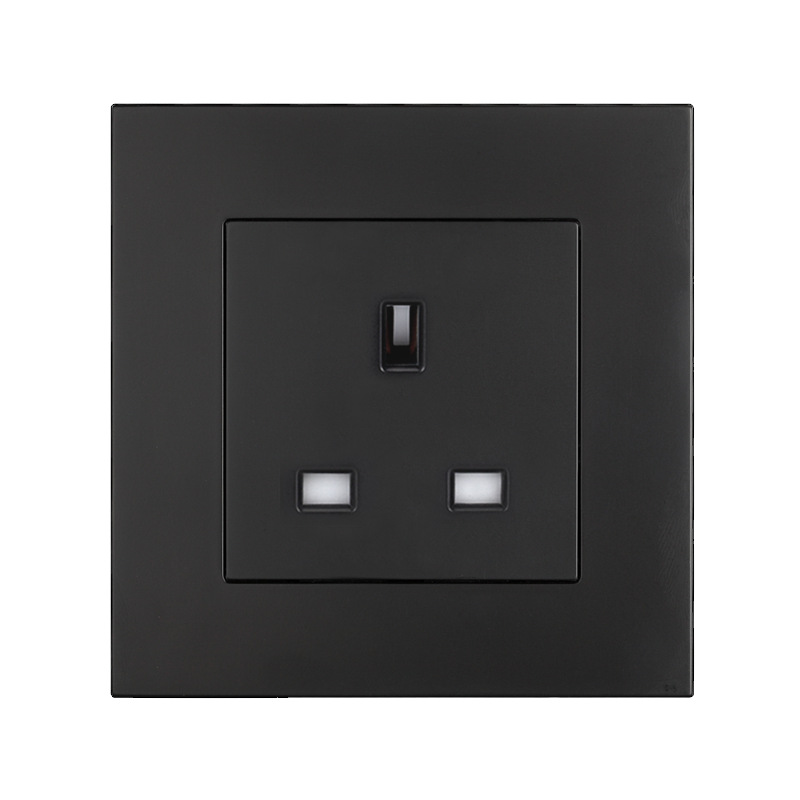Black British switch square plug socket 86 type British square foot square hole switch socket panel 13A British standard socket British standard socket British socket 13A square foot plug