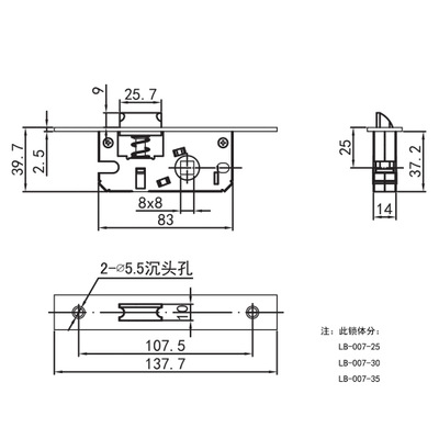 Zinc alloy lock body / high-quality zinc alloy transmission lock body / special lock for swing door LB-007-25