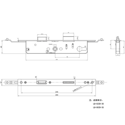 New swing door lock body / 30 one-way multi-point lock body / door and window transmission box lock box / stainless steel transmission lock box LB-002D-30