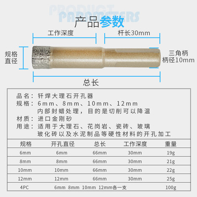 Brazed drill bit Marble drill bit Tile hole opener Triangle shank drill bit Electroplated drill bit Emery drill bit Vitrified drill bit Brick ceramic drill bit Glass dry drill bit