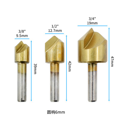 Round shank 90 degree chamfering machine Single-edged chamfering machine bit Titanium-plated chamfering machine Chamfering machine set Woodworking round hole tool Plate trimming drill bit Countersink