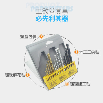 Electric drill accessories Drill bit set Titanium-plated twist drill Construction engineering impact drill Woodworking three-point drill Mixed drill bit set 9PC Multiple specifications drill bit Multi-function drill bit