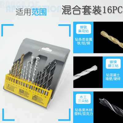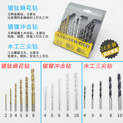 Electric drill accessories Drill bit set Titanium-plated twist drill Construction engineering impact drill Woodworking three-point drill Mixed drill bit set 9PC Multiple specifications drill bit Multi