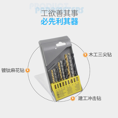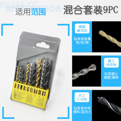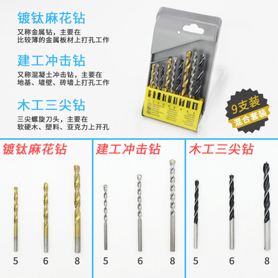 Electric drill accessories drill set titanium-plated twist drills construction engineering impact drills woodworking three-point drills mixed suit 9PC