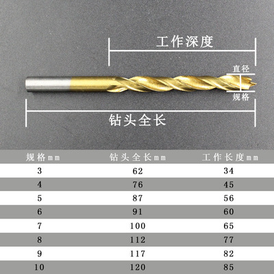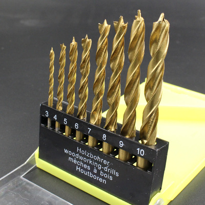 Titanium-plated drill bits, woodworking three-point drills, drill bit sets, wood and wood drills, drilling tools, edge-cutting drill bits, woodworking drill bits, 8 sets of 3-10mm