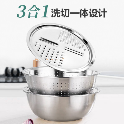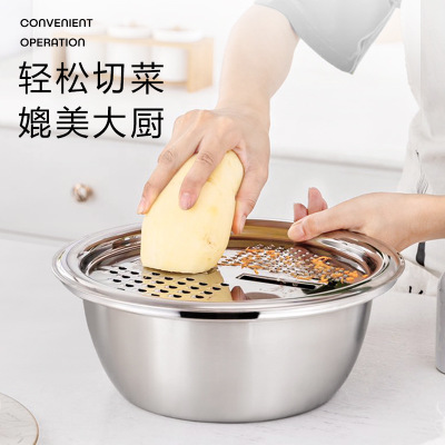 Thickened stainless steel grater basin set multi-function grater artifact multi-purpose basin rice sieve drain basin cutter non-magnetic