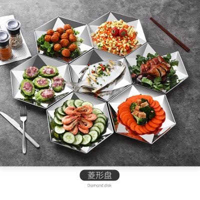 304 stainless steel platter combination seafood big coffee dish fan-shaped home reunion swing plate dinner plate hotel suitable platter