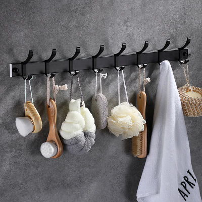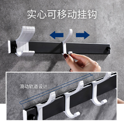 New space aluminum row hook movable clothes hook door rear row hook coat hook free punch aluminum alloy black hook