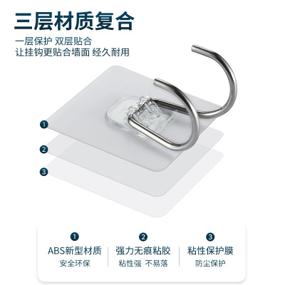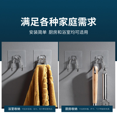 Manufacturer carton stainless steel solid hook wall-mounted bathroom toilet kitchen hook without punching door without magnet