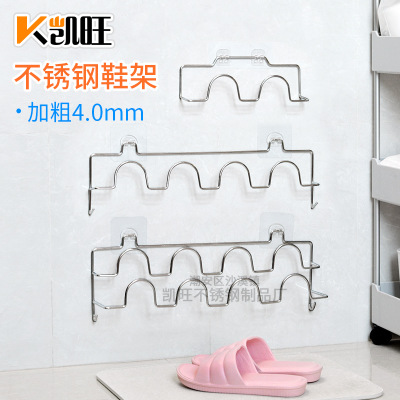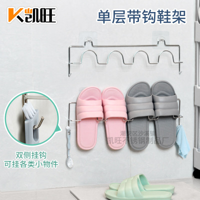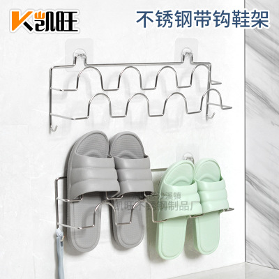 Stainless steel shoe rack bathroom kitchen special wall hanging type punch-free drying shoe rack slippers rack with hook shoe rack