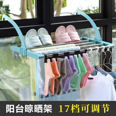 Stainless steel balcony drying rack hanging type multifunctional folding balcony drying rack window sill towel shoe drying rack