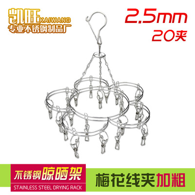Factory direct sale stainless steel sock rack Plum-shaped socks bold thickness 2.5mm/20 clip drying sock rack hanger