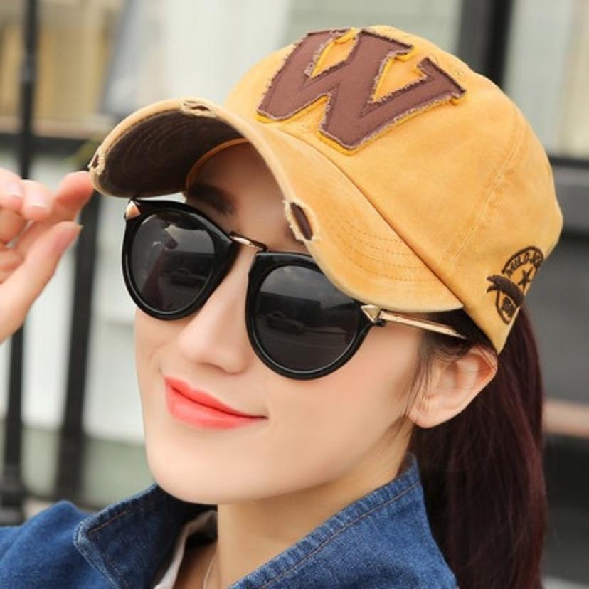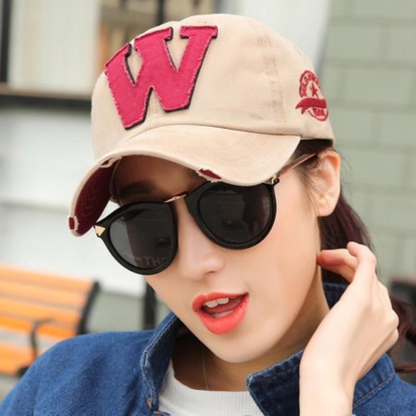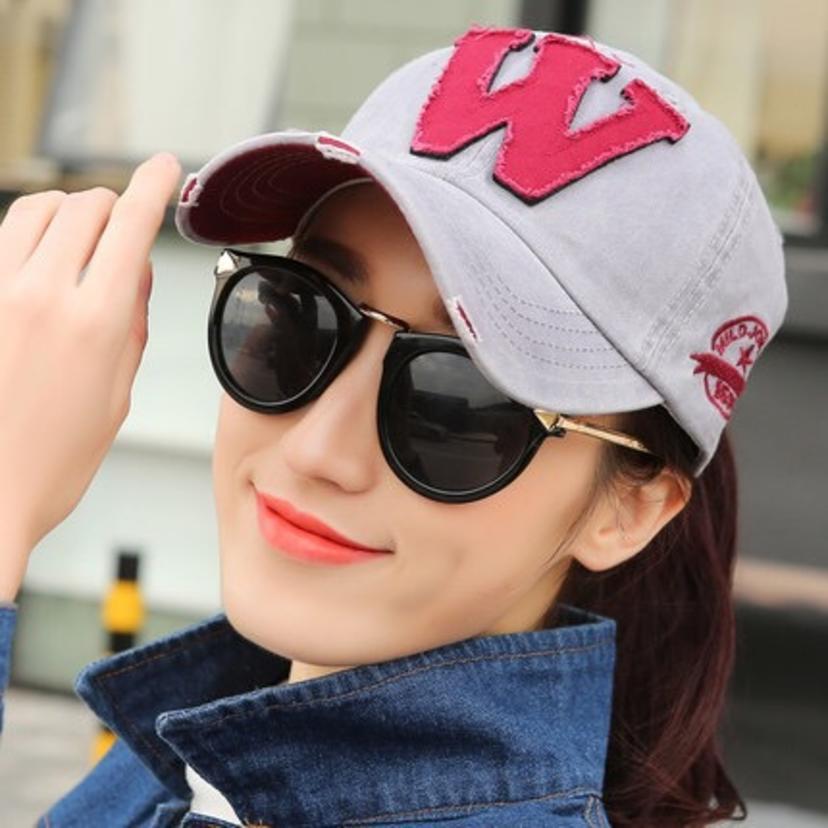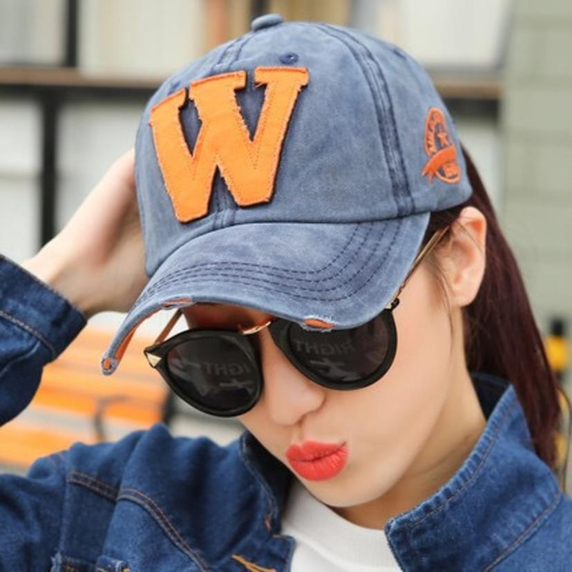 Korean version of the letter W baseball cap men's and women's denim cloth cap washed old curved visor (bag 6)