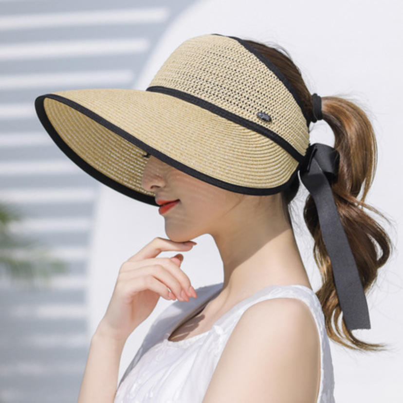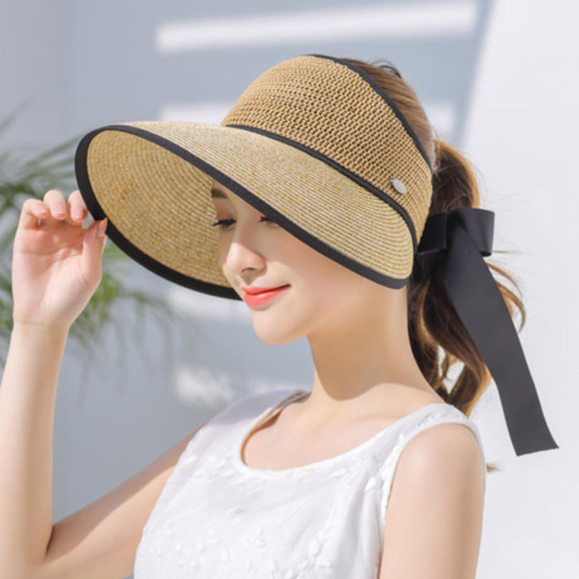 Korean version of the wild bow empty top hat female summer beach hat sunscreen big hat sun hat straw hat hat (hat 14)
